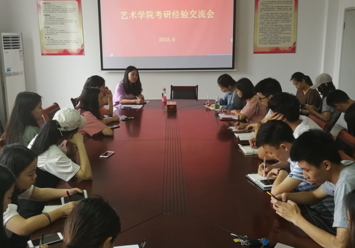 为进一步提升艺术学子的考研热情,了解考研的相关准备工作, 6月21日,艺术学院在会议室举行考研经验交流会,已考上研究生的14级同学王秀芝、韩娜、郑翀三位学姐应邀为有考研意向的同学们解疑答惑,交流分享考研经验。
