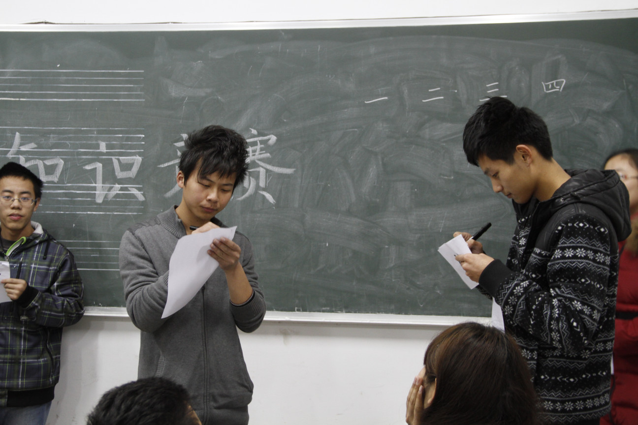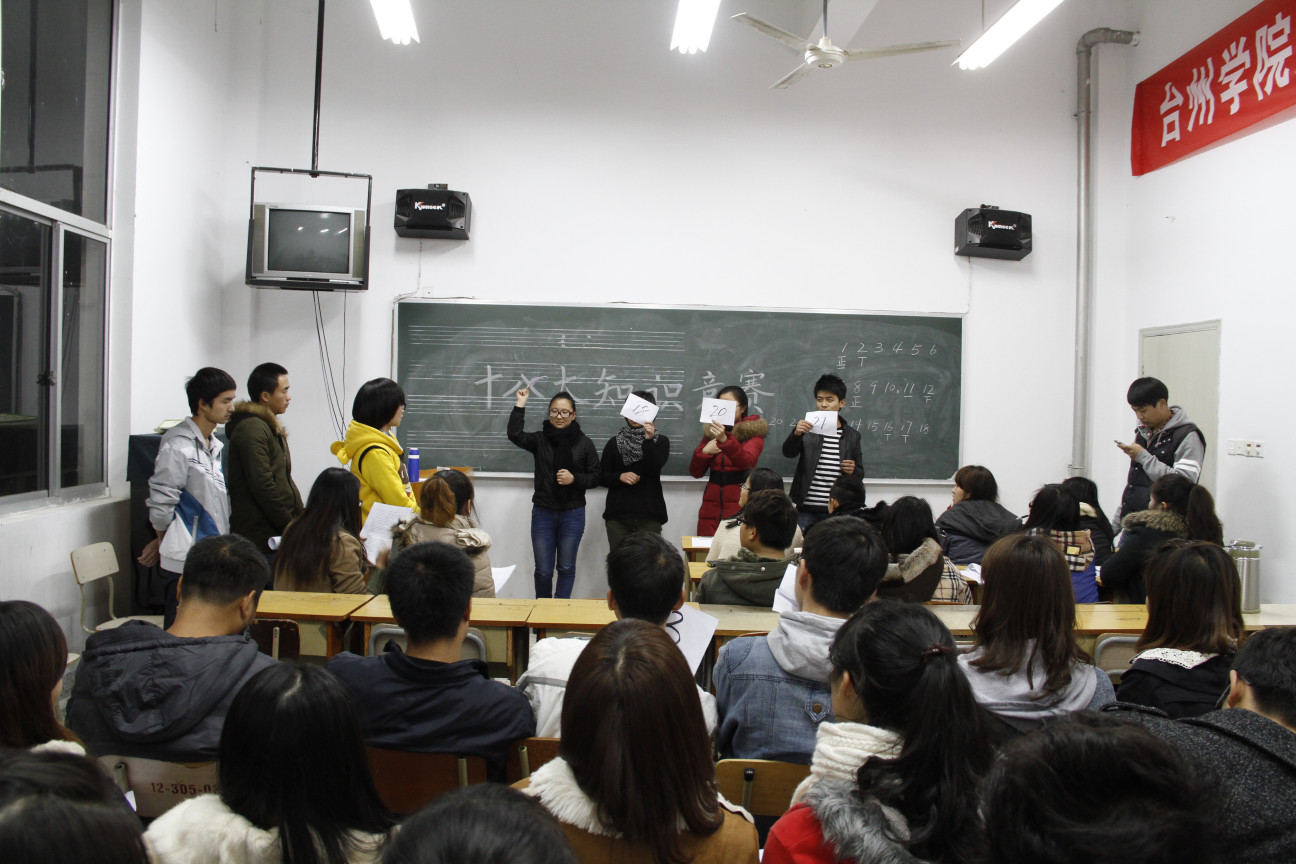 艺术学院十八大知识竞赛于2012年11月30日晚上6点30至8点30在艺术楼214教室举行。本次活动是由艺术学院团学会承办,参加对象为各班级团支部的成员。本次活动形式为知识竞赛,内容为十八大的相关知识,共分三轮进行,设立一、二、三等奖。第一轮:初赛以抢答形式分多组进行,每组进行10道判断题的抢答,取成绩最好的前30名选手进行第二轮复赛。第二轮:复赛以团队PK形式进行。第三轮:决赛以个人简答形式进行。初赛和复赛以标准答案为准,决赛陈述和回答要求内容积极向上,贴近主题,贴近标准答案为准。 经过激烈的角逐,11设计2班的楼佼佼同学最终取得了本次知识竞赛的冠军。