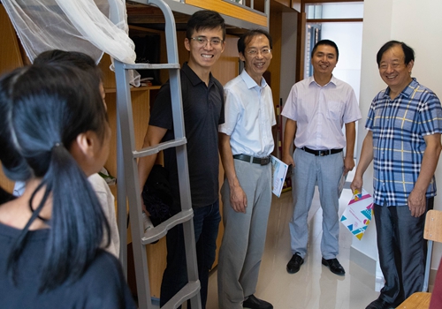 每到一间新生寝室,领导们在亲切关怀、殷殷叮嘱的同时,不忘强调寝室是大学最重要的场所之一,希望大家互帮互助、共同勉励,营造良好氛围,共建学习型寝室。