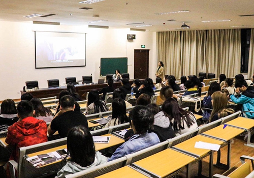 招聘会现场,画之都文创公司研发部负责人用视频与PPT相结合的方式进行了一堂以“创新的源泉”为主题的就业指导课,结合自身经历和多年经验与在座师生畅谈美术,分享艺术专业就业市场信息。同时介绍了公司概况、主营产品、工作环境等,并分享了公司“认真、快、坚守诚意、保证完成任务、不说不可能、决不找借口”的企业作风,以及“观念创造奇迹、行动提升价值、思想成就未来”的企业文化理念。公司面向美术、设计专业学生提供绘画师、装裱师、设计师等招聘岗位。