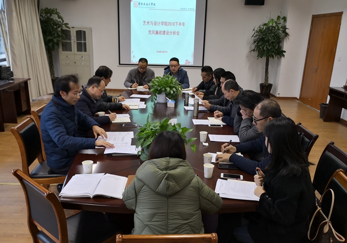 12月27日,艺术与设计学院召开2018下半年党风廉政建设情况分析会。校纪委书记吴国庆出席并指导;学院班子成员、系(室)主任、党支部书记参加会议。