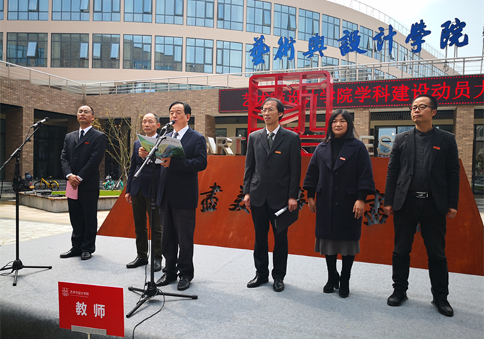 为响应学校“学科建设年”的部署与规划,3月27日,艺术与设计学院在艺术大楼前广场隆重召开全院学科建设动员大会,学院党政领导班子、全体师生参加。大会由学院党总支副书记林军辉主持。