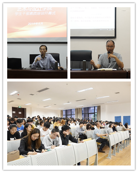 为增强学生干部队伍凝聚力和战斗力,进一步提升学生干部的综合素质,4月23日晚,艺术与设计学院在学术报告厅举行学生干部素质培训系列活动启动仪式。党总支书记张伟、党总支副书记林军辉、全体辅导员、团学会成员以及各班班长团支书参加了本次活动。活动由副书记林军辉主持。