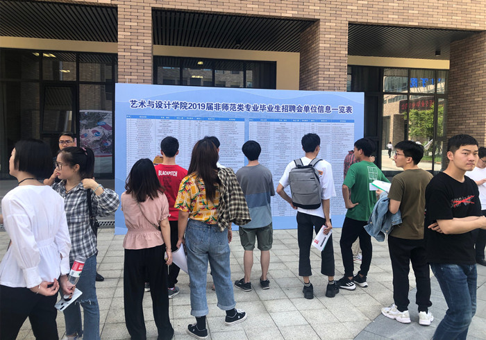 就业是每一个大学生都要跨过的一道坎,是人生的一个重大转折点,也是人生的一项伟大的工程。为进一步拓宽非师范类专业毕业生就业渠道,增加学院与各用人单位之间的相互了解和资源信息交流,更好地为毕业生提供就业的机会,5月23日上午,艺术与设计学院在艺术楼大厅举行2019届非师范类专业毕业生招聘活动。