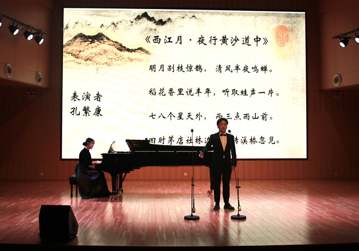 音乐会在全体同学表演的《西班牙女郎》中拉开帷幕,随着活泼的音乐节奏,西班牙女郎的热情与魅力展现的淋漓尽至。接着,各种节目轮番上场,独唱、重唱、民族、美声、通俗等各种形式,同学们尽情展示自己的歌喉,博得了在场观众的阵阵掌声,特别是叶高峰老师带来的《黄鹤楼送孟浩然之广陵》更是将现场的气氛推向了高潮,体现了叶老师高超的演奏技巧与专业素养。最后,叶老师寄语同学们要坚守自己的初心,能在音乐道路上越走越远。音乐会在混声合唱《山楂树》中缓缓落下帷幕。