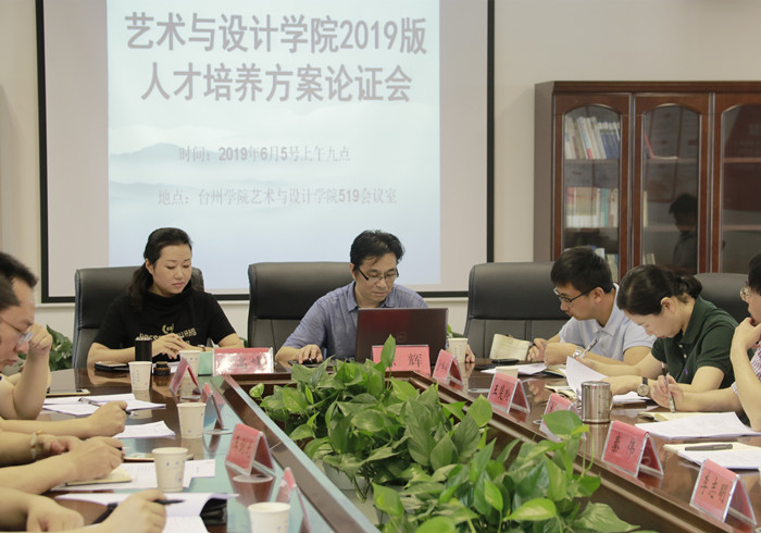 为深化教育教学改革,切实完善艺术人才培养方案, 6月5日上午,艺术与设计学院召开2019版本科专业人才培养方案专家论证会。会议邀请艺术教育名师郭金斐、潘彤辉、台州乾方品牌设计有限公司丁猛、浙江经纬印业有限公司总经理王剑光、浙江墨翟工业设计股份有限公司产品中心总监张磊、台州市梦工厂工业设计有限公司总经理潘国征、中国计量大学副教授、院长助理俞书伟等校外专家来院论证指导。艺术与设计学院全体领导及专业负责人等参加论证会。