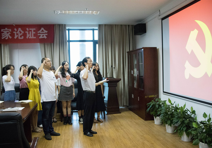 宣誓仪式在嘹亮的《国际歌》中拉开帷幕。张伟带领全体党员庄严宣誓:“我志愿加入中国共产党,拥护党的纲领……”。