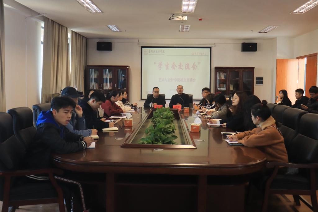 12月7日,艺术学院在党员之家举行学生会交流会。我院优秀校友代表、原学生会主席方双庆应邀出席。艺术学院党总支副书记林军辉出席并主持;分团委书记潘禹成以及团学会主席团成员、各部门学生代表参加会议。