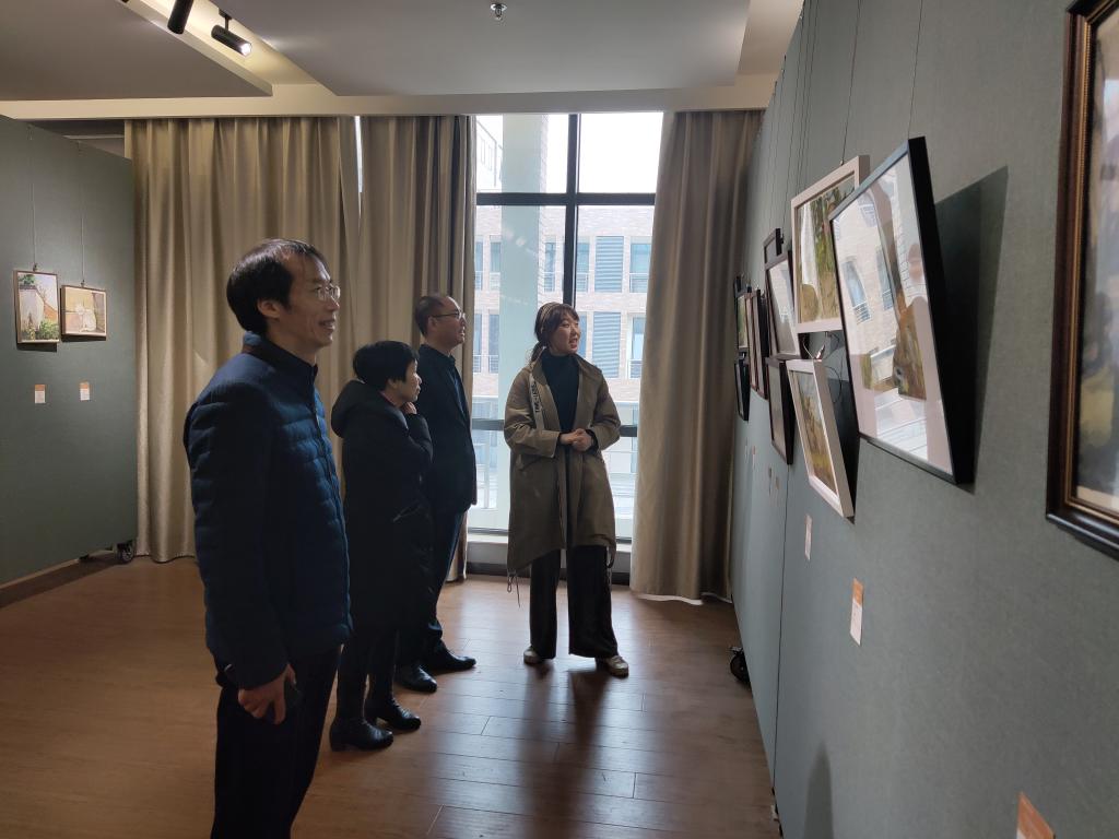张伟书记首先祝贺此次作品展能顺利举办,同时他对美术专业同学提出了殷切希望:一是要多思考、多练习、多交流,除了作品交流外,还可以谈学习心得体会,碰撞出不一样的火花。二是希望每学期每个班级都能有作品展览,每个人还能有个人展。