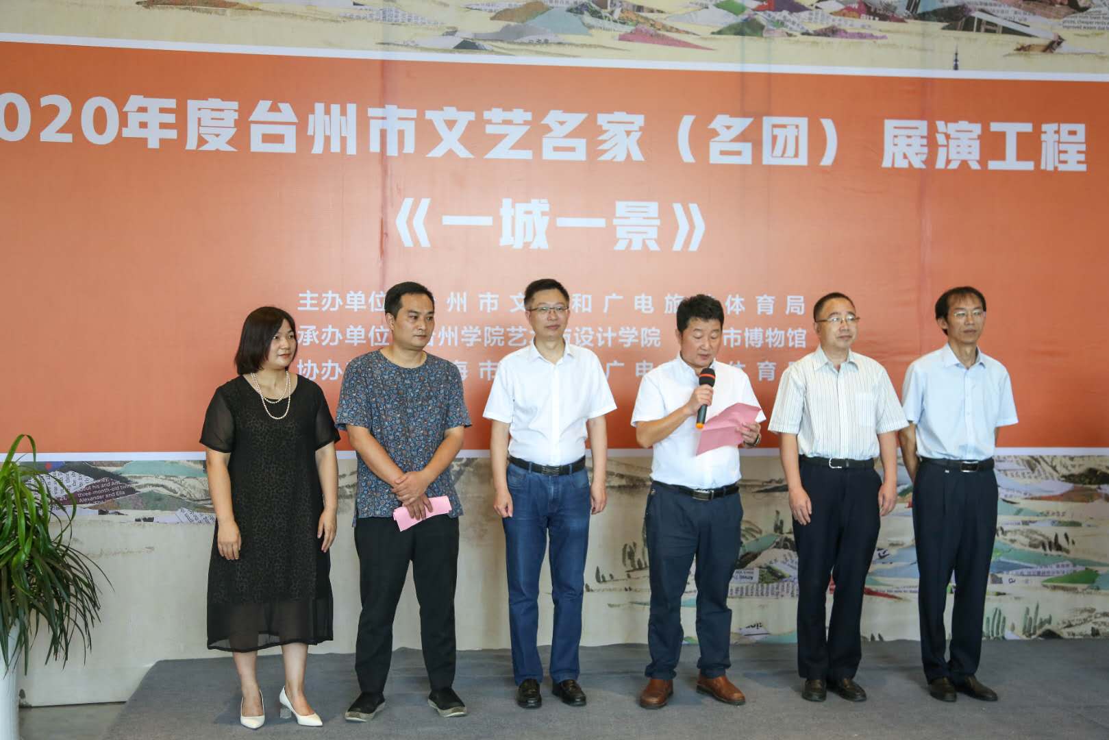叶飞副调研员指出,文艺名家名团展演工程是我市文化建设的一张金名片,把个人和团体专长以展演形式向社会展现,为台州市人才提供了展示才华、促进交流、提升水平的平台,同时丰富群众的文化生活,有力推动了我市文化事业的发展。李志明老师是台州学院副教授,《一城一景》的成功申报实现了台州国家艺术基金项目零的突破。本次展览为挖掘和宣传城市文化起到了示范的作用,为我市申报国家艺术基金项目起到了很好的带头作用。