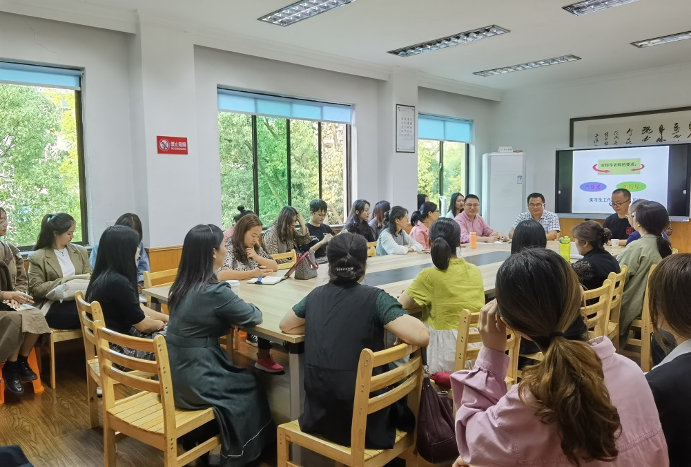 台州学院艺术与设计学院副院长赵振华教授希望同学们能严格遵守学校的作息时间,摆正心态,转换好角色,要从一名学生迅速转换成一名教师,时刻以教师的言行举止严格要求自己。要不怕困难,迎难而上,刻苦学习,认真完成实习中的各项工作任务,与指导教师多沟通、多交流,争取把指导教师的本领都学到手。