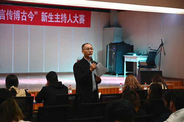 赛后,林军辉老师对此次新生主持人大赛进行了点评,充分肯定了选手们自信从容的比赛心态和青春勃发的精神风貌,同时指出选手们在比赛中不足之处。