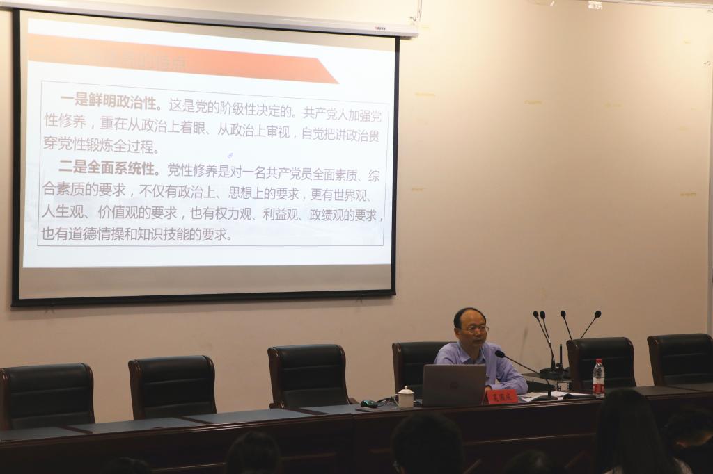 他指出党性修养的重要性在于永葆先进性和事业发展的需要,这是两个必然的要求。党性修养主要包括理论修养、政治修养、思想道德修养、文化知识和业务能力修养、作风修养、组织纪律修养等六种修养,而提高党性修养的基本途径是加强思想淬炼、政治历练、实践锻炼、专业训练。就如何加强思想淬炼,吴书记要求同学们认真学习习近平新时代中国特色社会主义思想和马克思主义哲学,不断提高逻辑思维和系统思维的能力,解决好“三观”问题,从而更加坚定共产主义信仰和服务人民的宗旨意识。