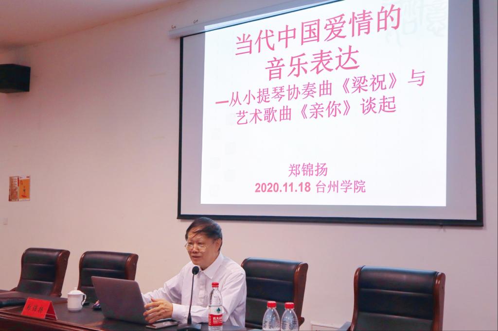 11月18日下午,艺术与设计学院在学术报告厅举行《当代中国爱情音乐表达》讲座,中央音乐学院博士生导师、福建师范大学音乐系创始人郑锦扬教授主讲,艺术学院院长李涛出席并主持,音乐系师生参加讲座。