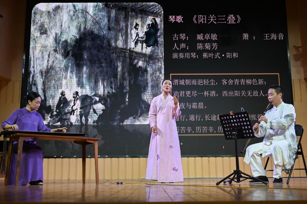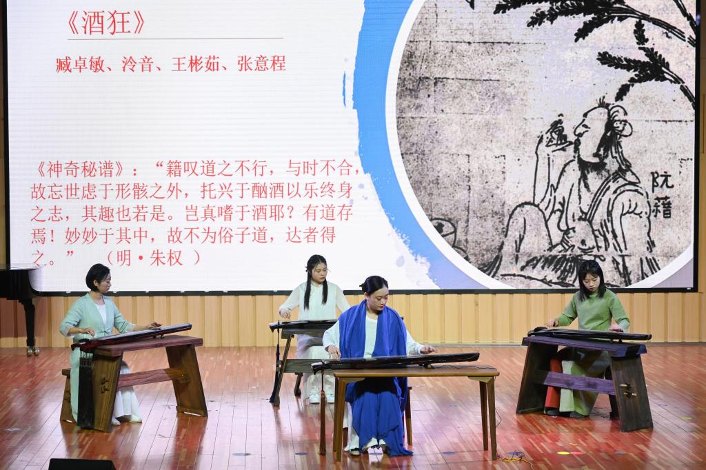 音乐会上洁净的琴声,时而清脆若珠落玉盘,时而低回同呢喃细语,载着人的心灵驶向音乐深处,寻找精神的玫瑰。愿大家不仅在蔼然醉心、怡然自得的琴声中涤烦除虑,雪躁静心,而且在古琴文化和音乐欣赏方面有所收获,在热爱的学习和工作中,充满能量,不忘初心、砥砺前行。