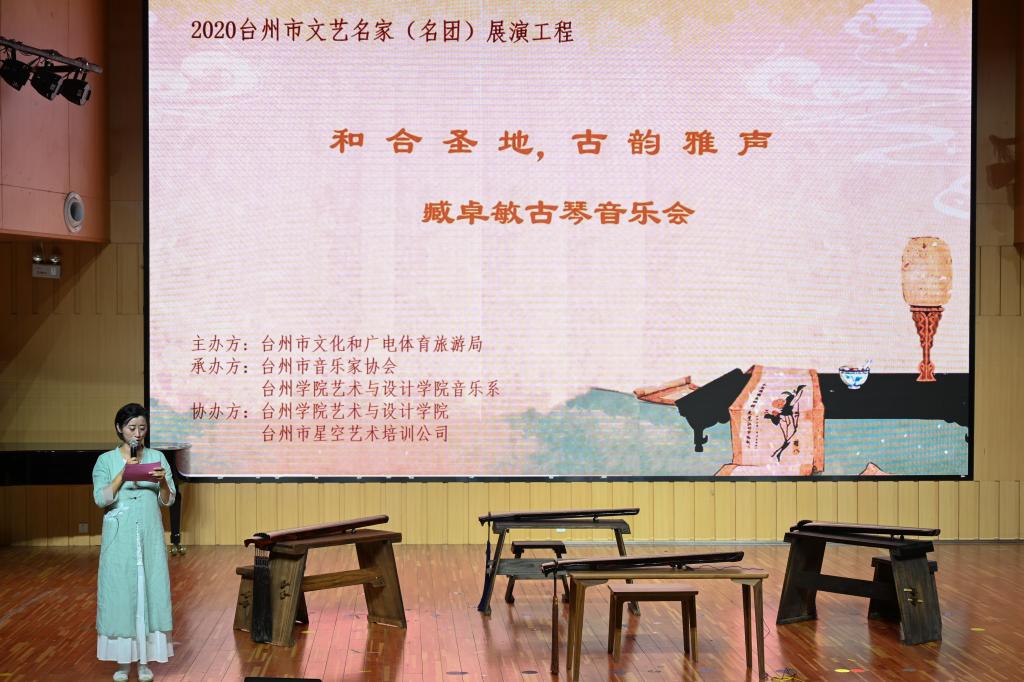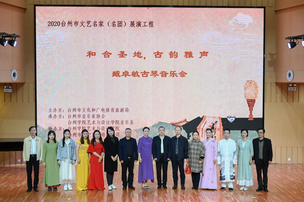 11月26日晚,台州市文艺名家(名团)展演工程 “和合圣地 古韵雅声” 臧卓敏古琴音乐会在艺术与设计学院音乐厅举行。台州学院副校长王正、台州学院纪委书记吴国庆、台州市文广旅体局副局长陈波、黄岩区政协主席柯善辉、黄岩区文广旅体局副局长陈文彬、台州日报总编黄保才,艺术学院党政班子领导莅临现场,音乐系师生参加。