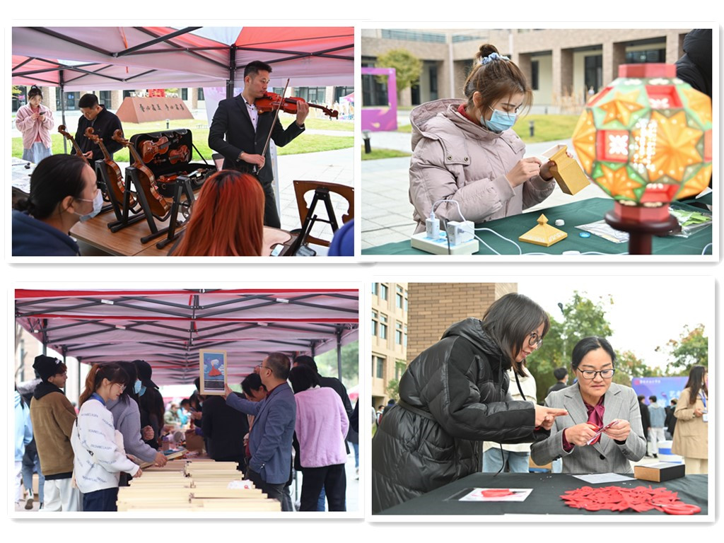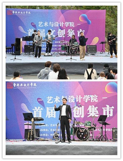 本次文创集市以艺术学院的学生文创为主体,以文创现场体验和文创产品售卖相结合的方式,共分为五大区块,40多个文创摊位,内容涵盖台州非遗艺术体验、音乐表演、乐器制造、美术创作、艺术设计、文化创意、美食创意等,融美术、音乐、设计于一体。活动中,大学生艺术团电声乐队参与现场演出,整个现场活力四射、创意十足。