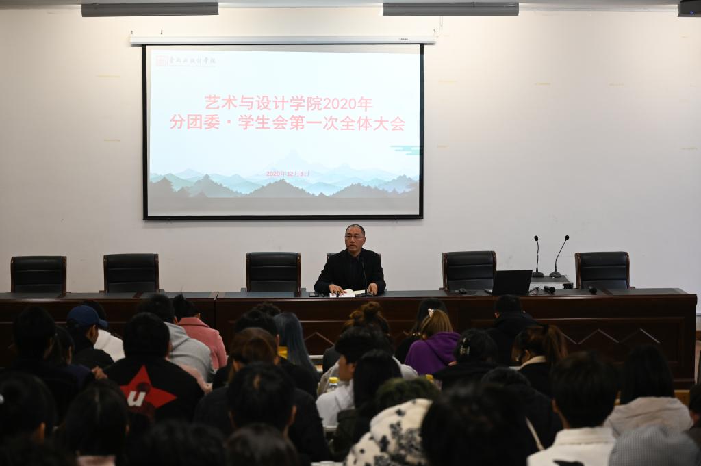 12月3日,艺术与设计学院在学术报告厅顺利召开分团委学生会第一次大会。学院党总支副书记林军辉、全体辅导员出席,分团委书记潘禹成主持会议。