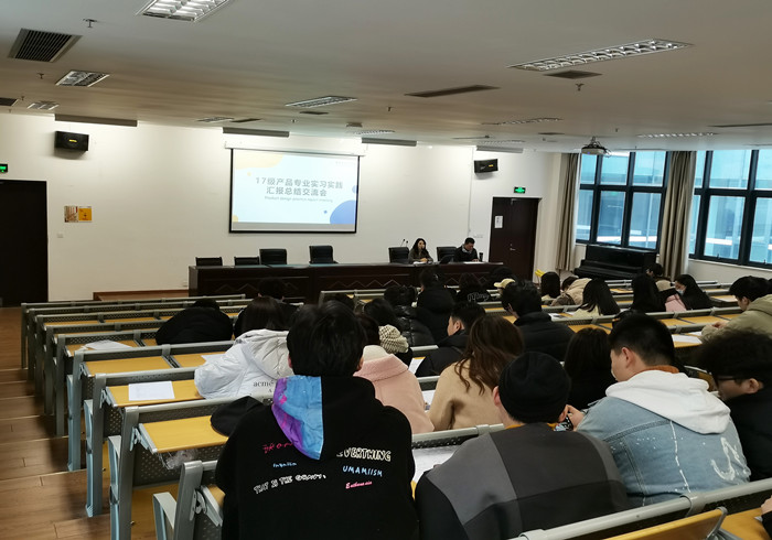 1月7日下午,艺术与设计学院2017级产品设计专业学生实习汇报在艺术楼学术报告厅举行,产品设计系主任王海亚、实习导师孙宇、马金金,班主任许楗昀出席汇报会。