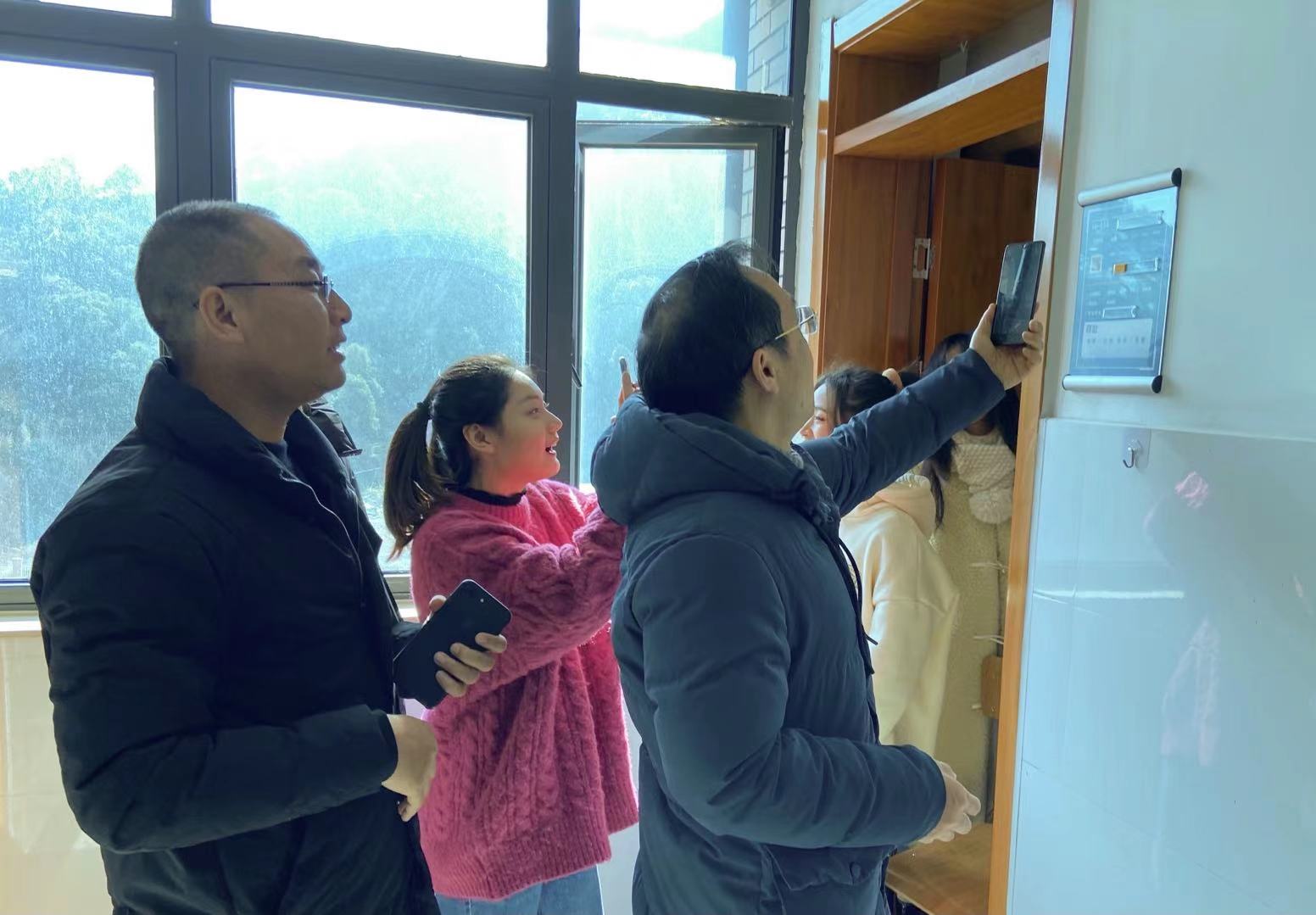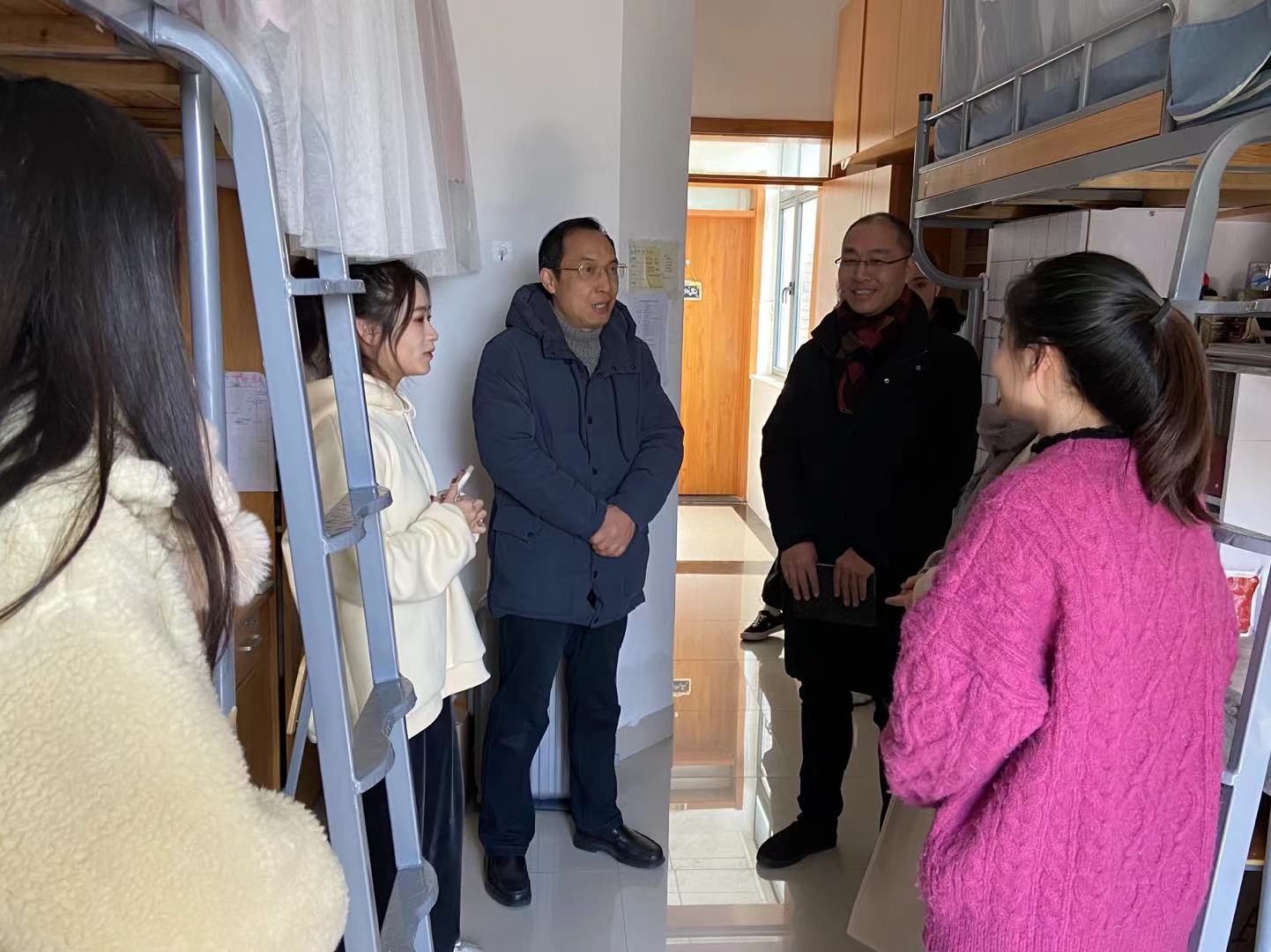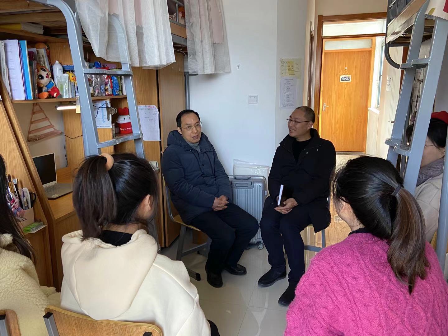 1月19日中午,校党委委员、副校长胡韶光走访艺术学院学生寝室,与学生面对面座谈交流。艺术学院副书记林军辉陪同走访。