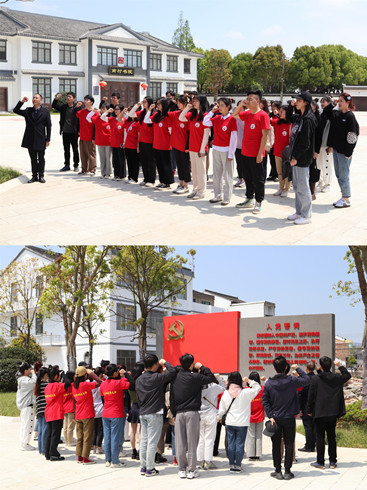 随后,党员一行人在主题历史陈列馆、戴大夫旧宅参观学习,不时在老照片下驻足讨论。参观结束后,师生党员们合影留念并在党旗前重温入党誓词,回忆入党初心。宣誓时党员们个个昂首挺胸,声音激情响亮,眼神坚定。作为新时代中国特色社会主义的接班人与建设者,学生党员纷纷表示要好好学党史,以史为鉴,不忘初心,牢记使命,立足岗位努力学习和奉献,向建党100周年华诞献礼。