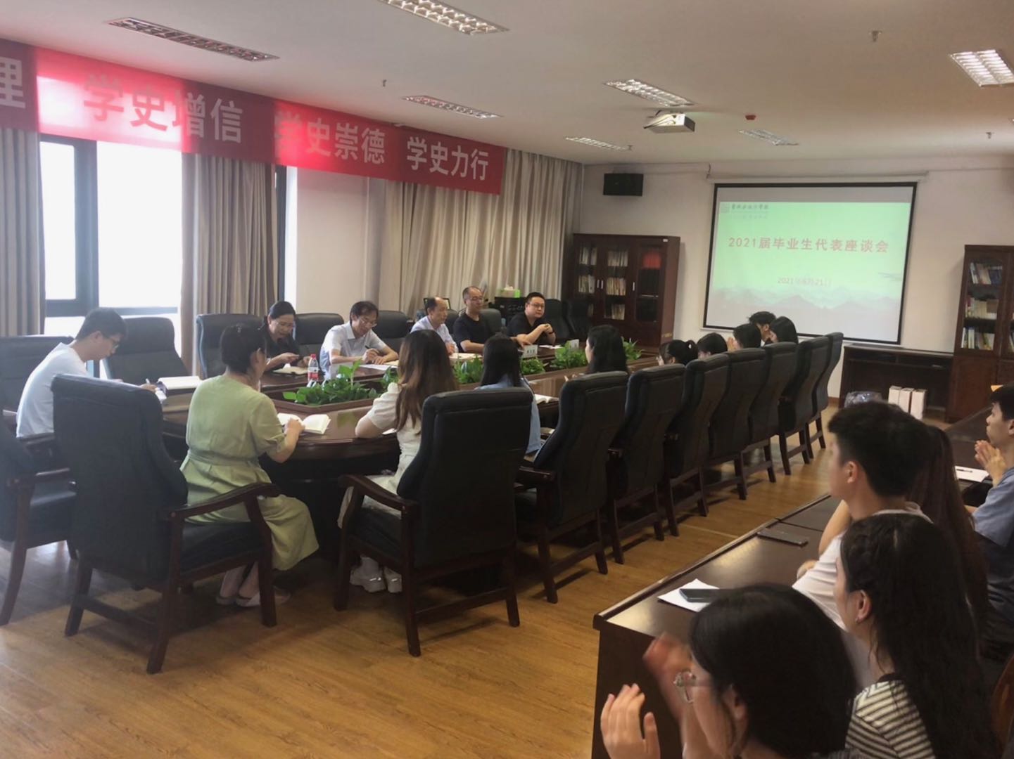 6月21日下午,艺术学院在519会议室举行2021届毕业生代表座谈会,执行院长李涛、党总支书记张伟、党总支副书记林军辉、系主任、辅导员、部分毕业生代表参加会议,林军辉主持会议。