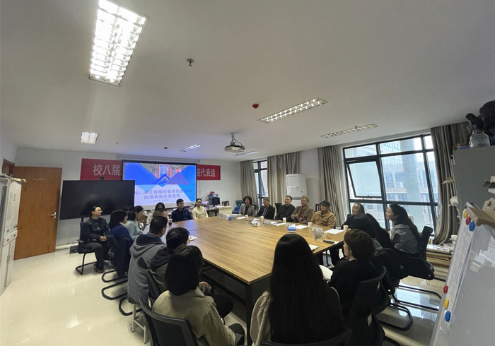 11⽉4⽇下午,艺术与设计学院举办了《浙江省高校美育实践活动的现状和未来趋势》座谈。浙江交响乐团团长、省合唱协会副理事长、省声乐专业委员会副主任、教授郭义江,省合唱协会副理事长、研究馆员、作曲家张卫东,男中音歌唱家、浙江省文化馆研究员夏国民,浙江电视台大型活动一级导演周永东,中国合唱协会理事、省合唱协会秘书长、省文化馆社会文化指导中心主任周卫平出席座谈,音乐系主任李小兵主持,音乐系钢琴及器乐教研组相关教师参与。