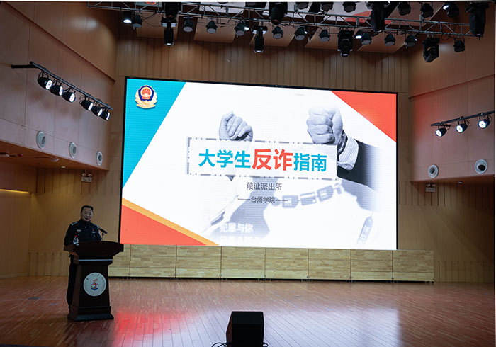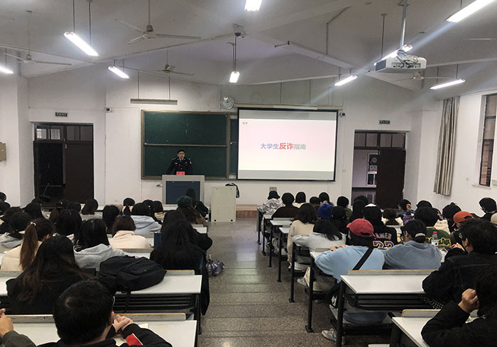 为进一步提高学生防范电信网络诈骗的意识和能力,做到反诈宣传全覆盖,11月16日晚与18日下午,艺术学院再一次邀请了葭沚派出所教导员张杰、洪竹生两位警官开展了大学生反诈安全教育讲座。各专业400余名学生参加,学院党委副书记林军辉、辅导员孙晓俊分别主持。