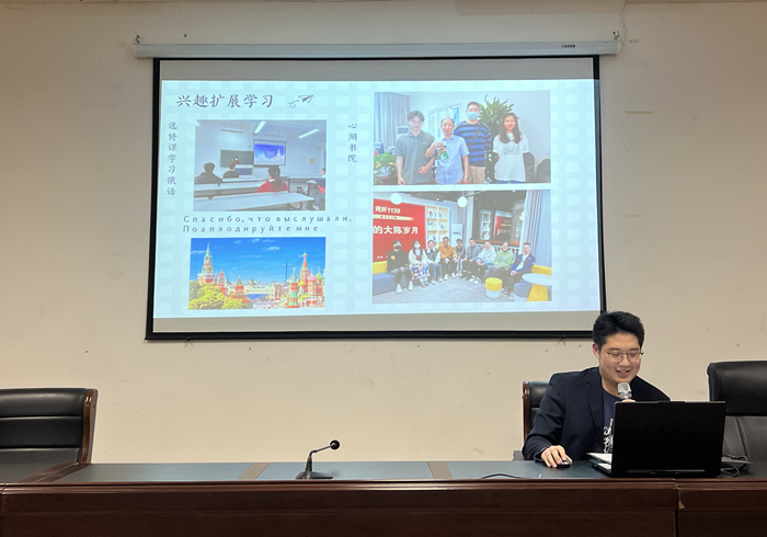 此次评选通过班级推选和学生自荐的方式,最终确定了21位候选人。评选活动采用线上线下相结合的方式进行,21名候选人按照抽签顺序依次上台进行展示,介绍自己在学习、工作、创新创业、社会实践和志愿服务等方面取得的优异成绩和奋斗成果。学子们热情激昂的演讲,丰富多彩的大学经历深深打动了在场的评委老师,赢得了阵阵掌声。