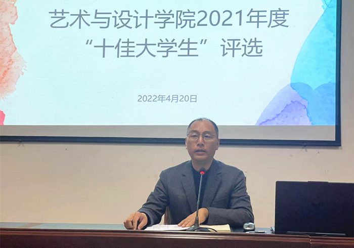 4月20日晚,艺术与设计学院在学术报告厅举行2021年度“十佳大学生”评选。党委副书记林军辉、党委委员徐培林、班主任代表及全体辅导员应邀担任评委。