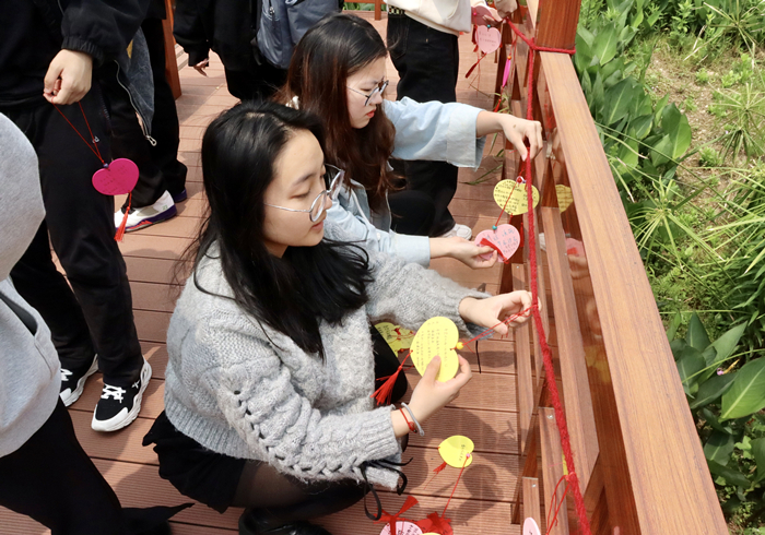 为积极配合美丽校园建设,进一步丰富同学们的校园文化生活,近日,艺术与设计学院开展心愿桥装饰活动。