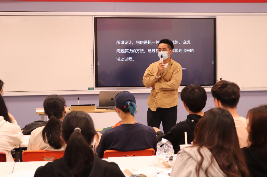课程共有“摩托车外观cmf设计”和“走出校门,设计都用到哪里去了?”两部分,分别由王嵩松、薛立康授课。两位老师从资深设计师的视角出发,结合企业需求,讲授平面设计知识。