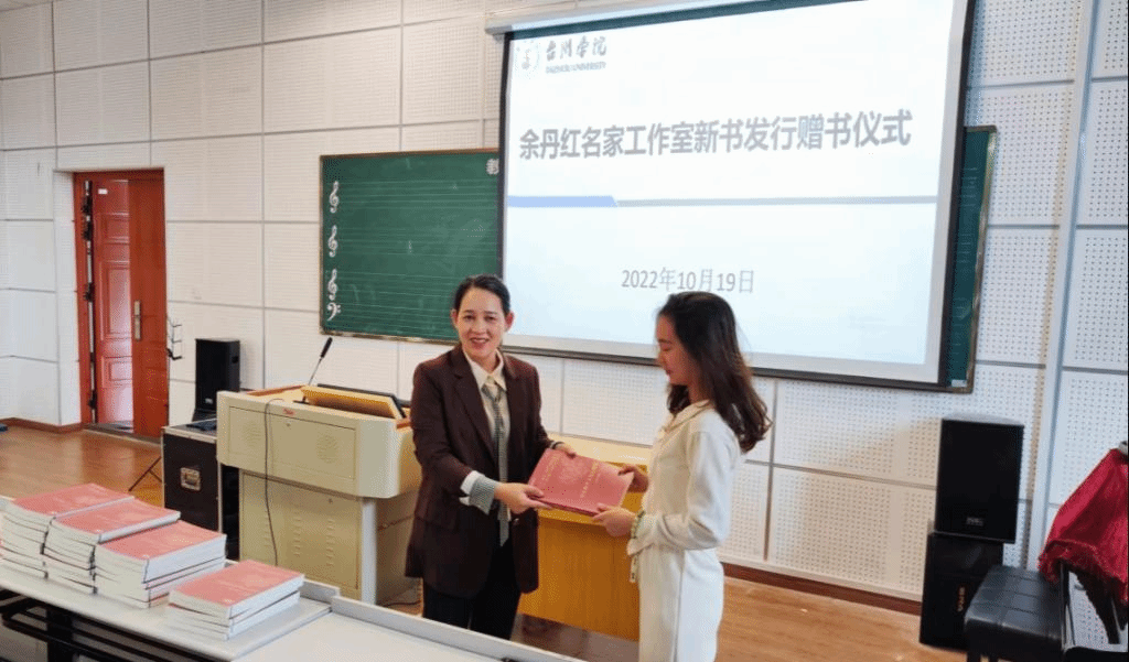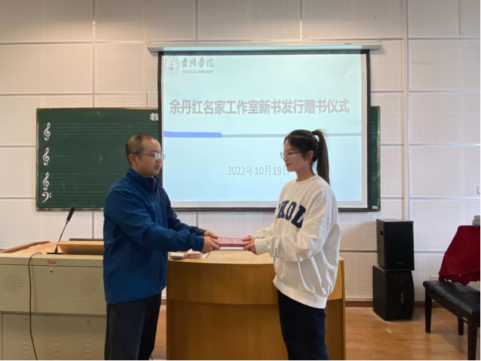 10月19日,台州市宣传文化名家工作室领衔人、著名音乐家余丹红新书发行暨赠书仪式在艺术与设计学院举行,音乐系全体学生、部分教师代表参加,副院长叶高峰主持仪式。