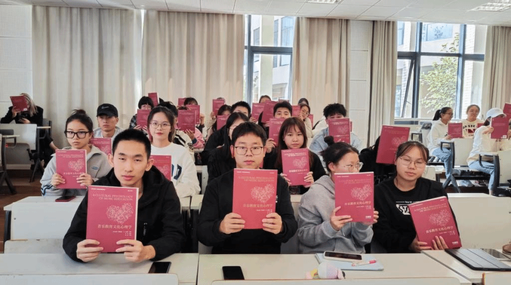 仪式上,因受疫情影响余丹红教授未能莅临现场,委托学院陈乾英、李俊等教师将300余册《音乐教育文化心理学》书籍发放给在座每位师生,在座师生现场开展了新书共读活动。
