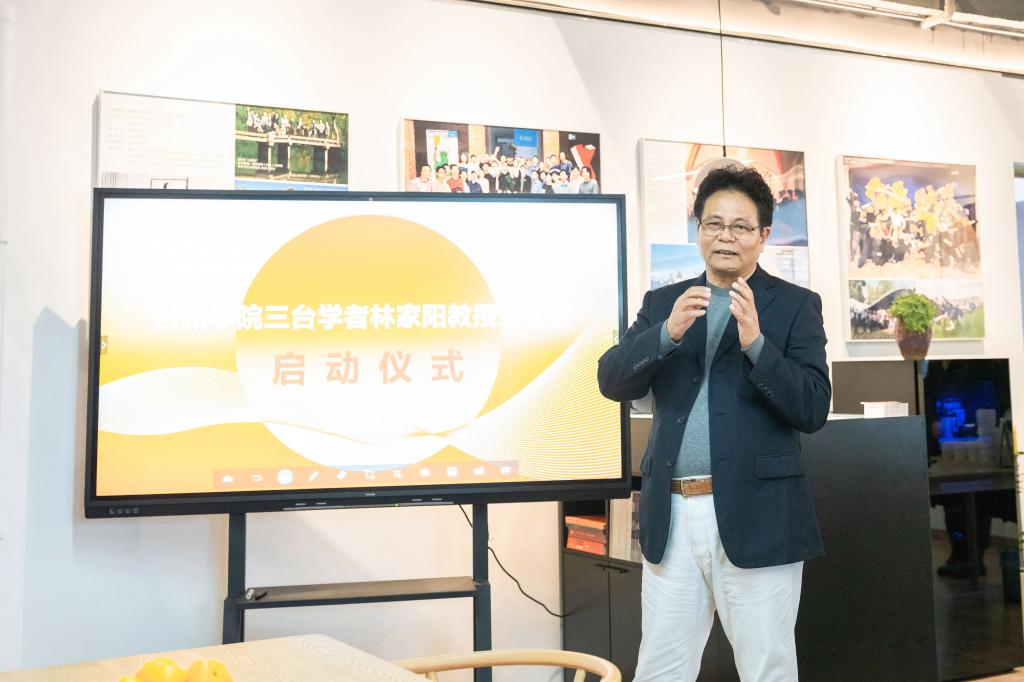 林家阳教授在发言中回顾了过往的工作经历,是社会责任和艺术教育使命使他接受了台州学院三台学者的荣誉任命,他强调以工作室为阵地,推进学院的改革和进步及师资教学质量的提高,通过工作室的社会资源为学院教学、科研、产学融合和国际交流提供支持。
