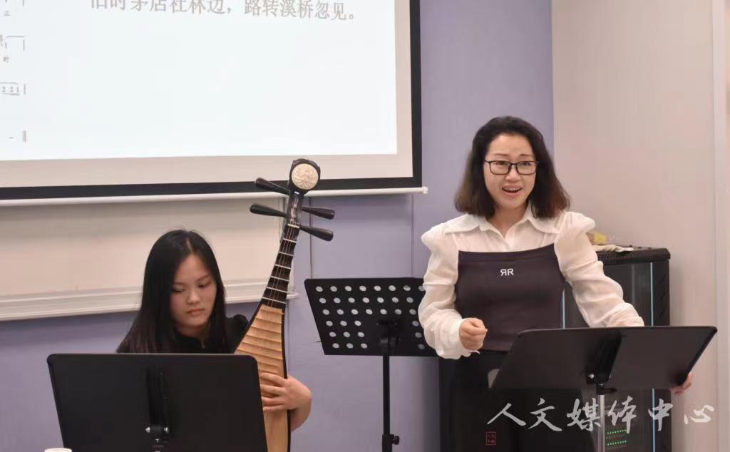 近日,为推进“中国古代文学”国家一流课程建设,在学校的牵头组织下,我院与人文学院开展了以“唐宋音乐文学之诗词专题教学”为主题的联合课堂。