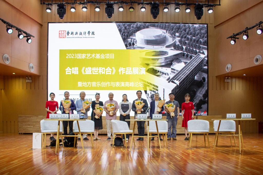 5月30日下午,艺术与设计学院在音乐厅举办地方音乐创作与表演高峰论坛,南京艺术学院教授居其宏、上海音乐学院作曲指挥系教授周湘林、上海音乐学院教授余丹红、上海音乐学院作曲指挥系教授尹明五、上海音乐学院贺绿汀中国音乐高等研究院高级研究员李诗原、上海音乐学院作曲指挥系教授吴基学、上海音乐学院作曲指挥系教授徐坚强受邀作讲座。徐坚强及艺术与设计学院副院长叶高峰主持,天台合唱团及音乐系师生参加。