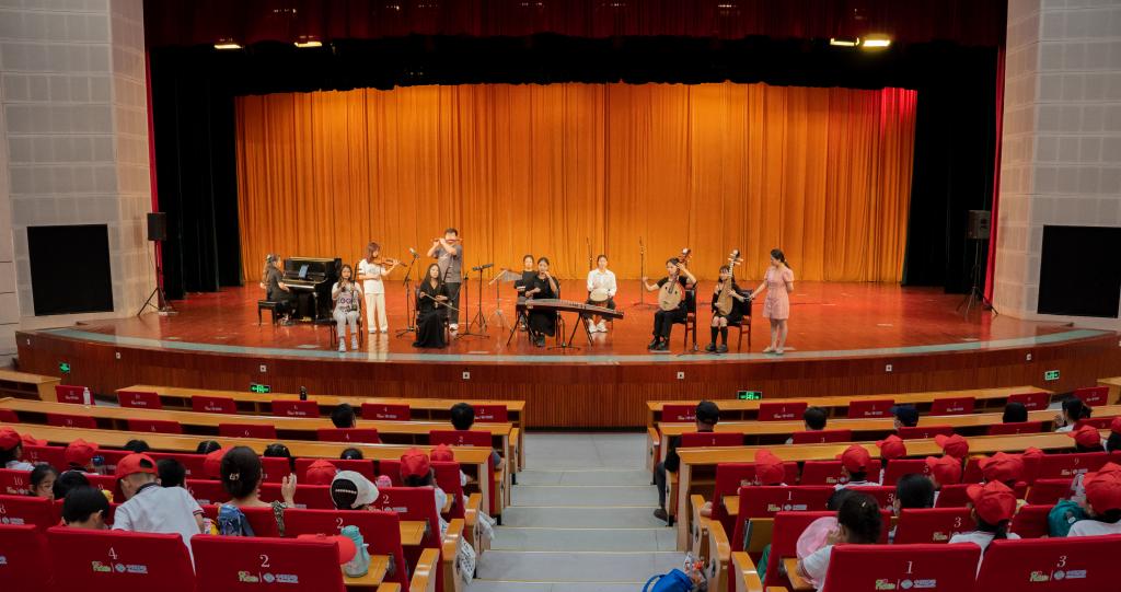 台州学院大学生艺术团镜·音乐团、雩风舞蹈团、九歌合唱团等为小学生们带来了一场场表演。有器乐合奏《山语·幻》、合唱《扯谎歌》、舞蹈《橘与灯》、二胡《风居住的街道》、歌曲《阿妹》、《星辰大海》等,精彩的表演让小朋友们发出阵阵赞叹。台州学院附属学校的小学生们也为大学生们带来了朗诵《红领巾之歌》,台风自然大方,声情并茂,赢得了一阵阵喝彩。