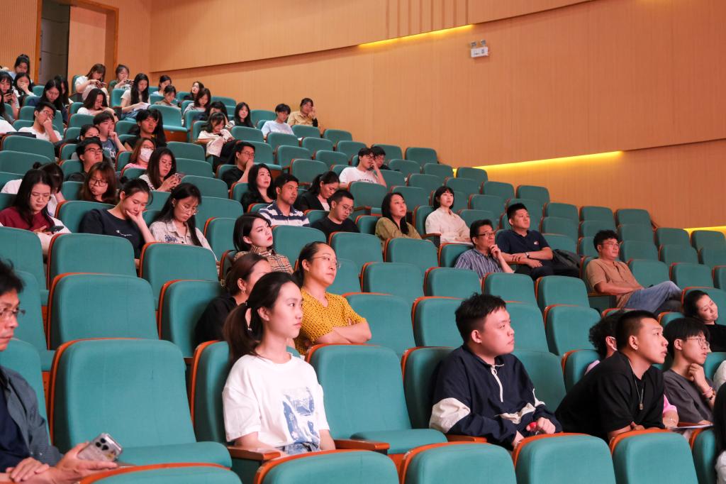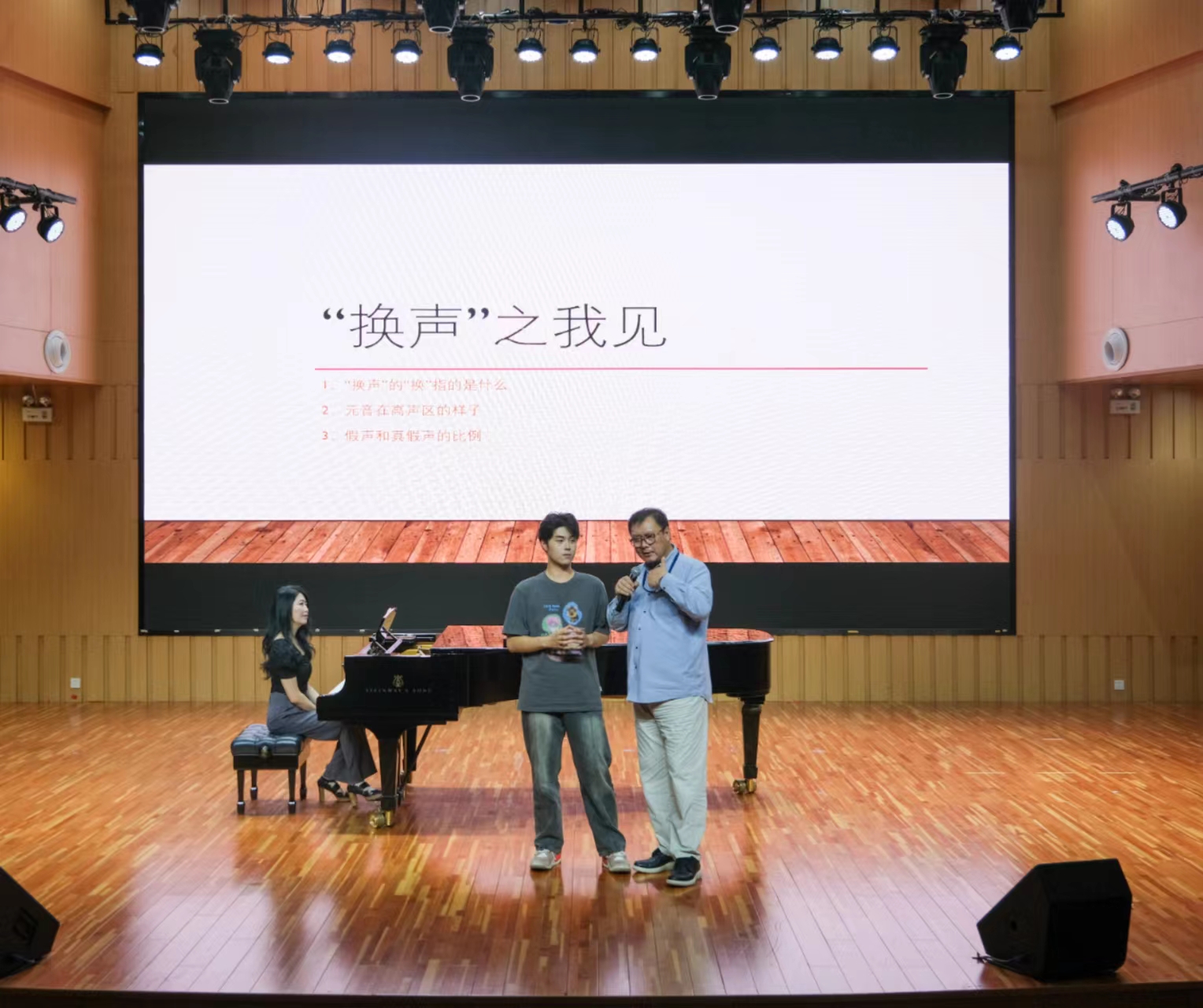 讲座上,马金泉讲述了其几十年的教学心得与体会,从声乐表演专业的“教”与“学”、歌唱实践中发声生理与发声的技巧调控两个方面做了细致的讲解与分享。同时他就声乐教师的定位、教学方式提出了新见解。他认为声乐老师需要具备知识的储备和不断自我提升的能力,能够完成“教“的任务,做到能教,会教。最后他针对如何学习声乐、如何提升自我给予了中肯的建议,提出“实践是检验真理的唯一标准”,强调声乐学习之路从来都不是坦途,要提高勤实践及多敬畏重要性,还就“声乐”“乐感”“咬字”“鼻音”“换声”等几个专业词汇进行了细致的剖析。