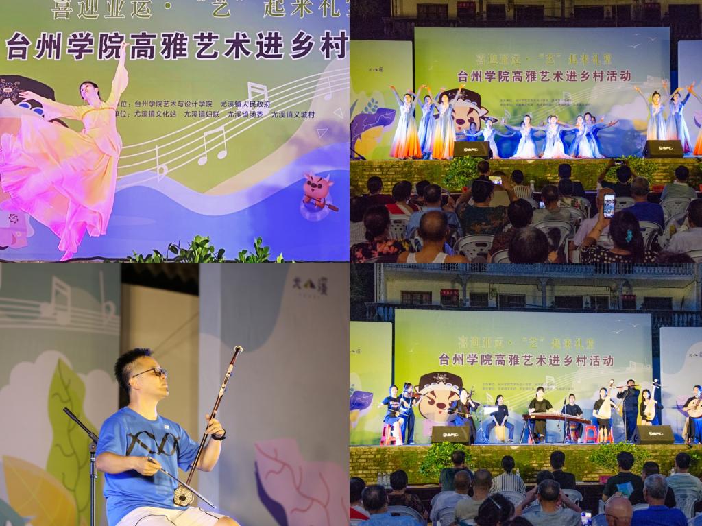 近年来,台州学院艺术与设计学院发挥学科优势和专业特色,积极开展党建引领艺术乡建,精准助力乡村振兴。大学生艺术团成为当地乡村文艺活动的主力军,艺术学子们纷纷走进社区、农村、部队、企业等单位开展文艺赋能活动,临海涌泉镇“橘花节”、天台塔后村啤酒音乐节、玉环文日旅游节、台州市草地音乐节、白水洋“五水共治”政策宣讲进农村文艺下乡活动……50余场的演出遍地开花,为畅通院地、院企合作交流锦上添花,丰富了当地群众的精神文化生活,同时充分展现了青年学生的艺术才华和良好精神风貌。