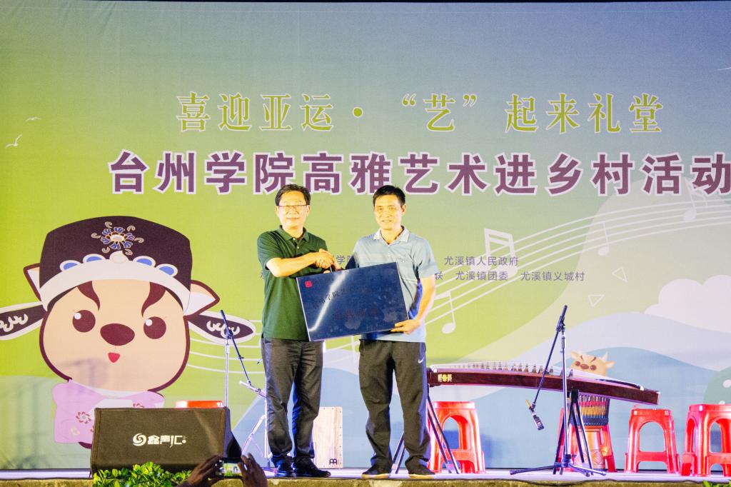 活动现场充盈着“校村一家亲、携手共繁荣”的和合氛围。艺术与设计学院党委书记姜向阳和义城村党总支书记金龙飞先后上台致辞并举行“台州学院艺术与设计学院实践基地”的授牌仪式。作为全国文明村、省级美丽宜居示范村的义城村,将定期接受艺术学院师生到基地开展写生、文艺演出等实践活动,依托高校师资力量,紧紧围绕艺术服务地方美丽乡村建设的需求,打造具有示范性、创新性的校外实践合作平台。
