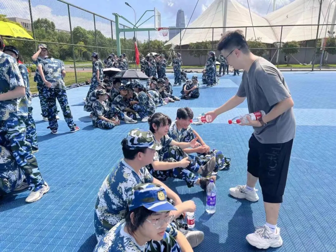 军训期间,学院领导和辅导员们还为学员们送去了清凉饮料、防暑药品等物资,关心询问他们的身体状况、训练进度等情况。