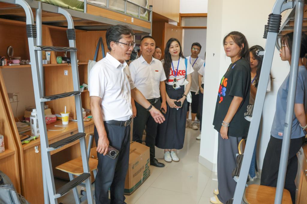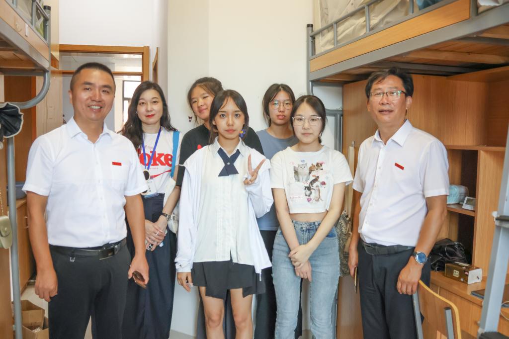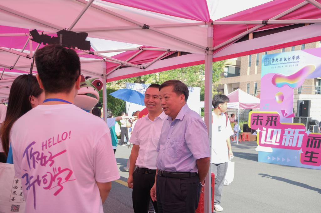 期间,学校党委副书记、校长乐传永,副书记金先龙莅临现场,与新生和志愿者们亲切交谈,并对迎新工作给予高度肯定。随后,校学工部部长王秋方、学院党委书记姜向阳、副书记王洁茹陪同新生参观艺术楼,并走访寝室,慰问新生。