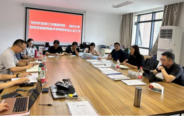 9月21日上午,浙江外国语学院艺术学院院长李敏、副院长李晨,温州大学美术与设计学院副院长胡文超一同莅临艺术与设计学院303教研室,指导美术学师范专业认证工作。艺术与设计学院院长柯胜海、副院长赵振华出席,美术系主任徐海军、副主任刘洋及美术系全体教师参会。
