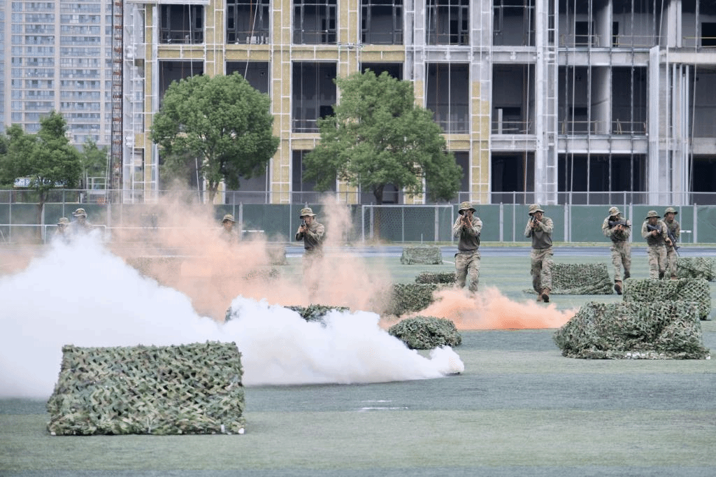 “原地休息!”,一声令下,原本紧绷的身体,立刻松懈下来。盘腿、伸展身体、活动筋骨,享受这片刻难得的时光。