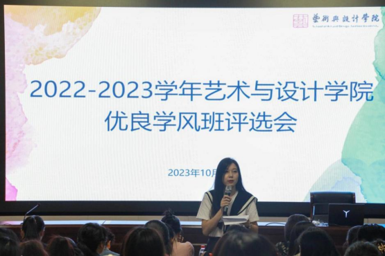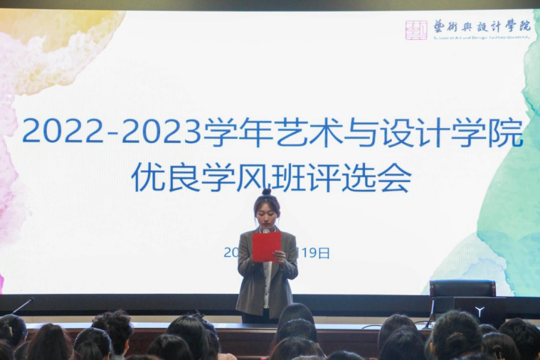 为扎实有效地推进学风建设,营造良好的育人环境,建设热爱学习、崇尚学习的学风,10月19日晚,艺术与设计学院在学术报告厅举办优良学风班评选会。学院党委副书记王洁茹及各班班主任、辅导员作为教师评委参加会议,学生干部作为大众评委参与。会议由23音乐1班程心悦主持。