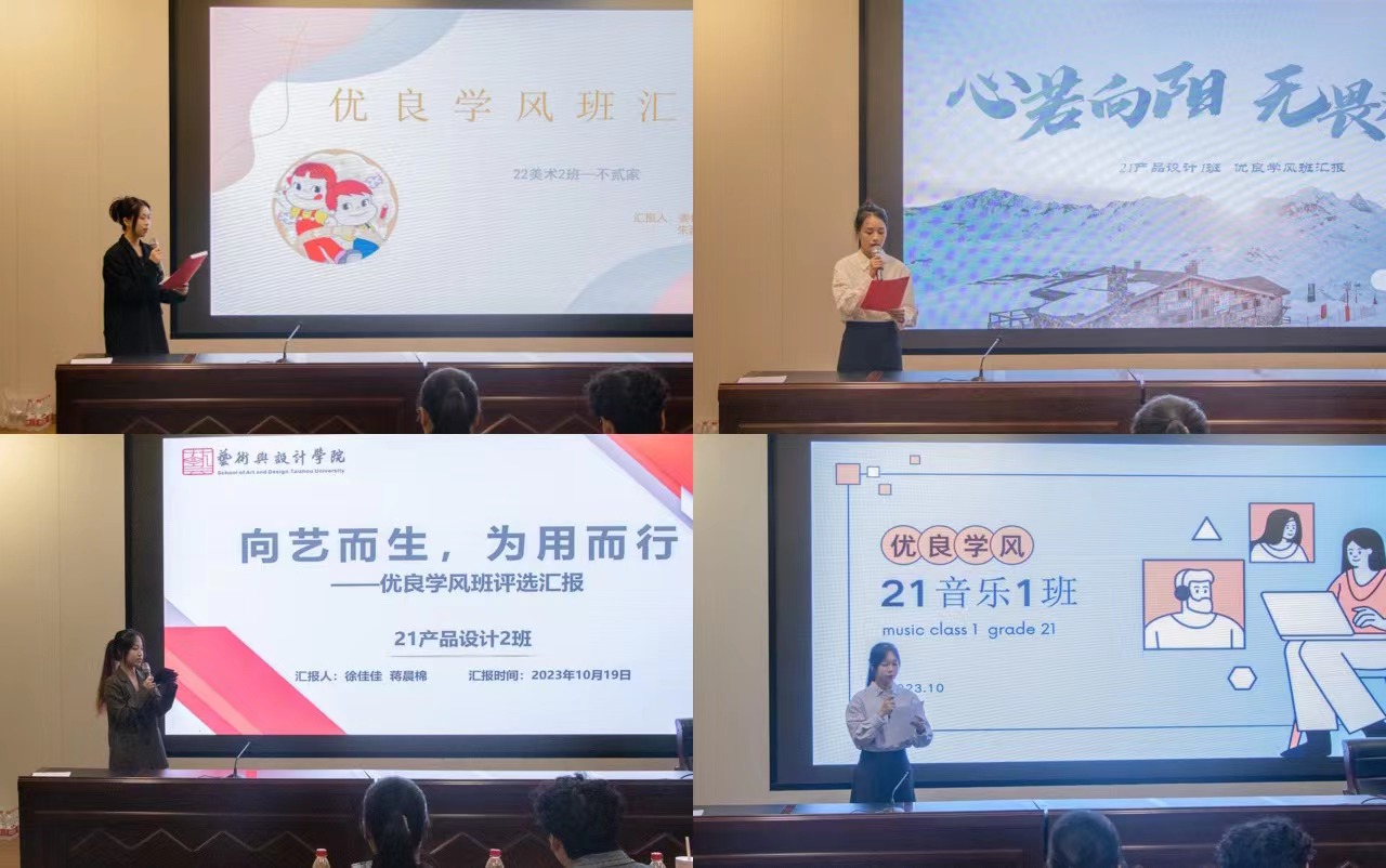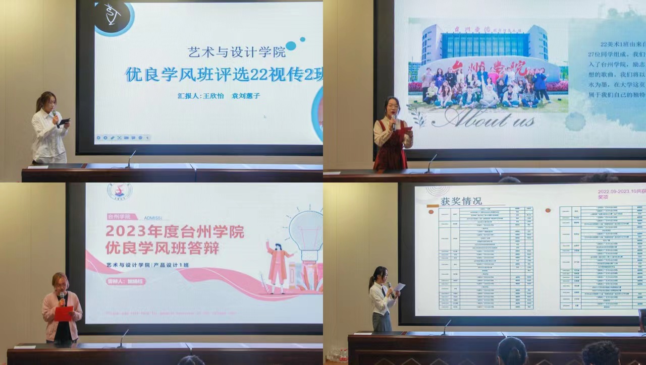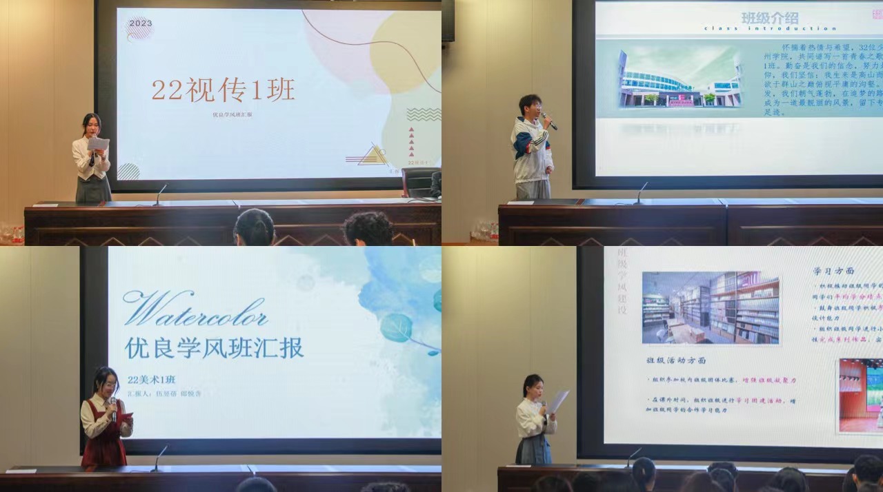 会上,参选的16个班级秉持“艺必尽美 事必尽善”院训,通过精美的PPT、巧妙的创意且生动的演讲,从班级简况、学风建设、思想建设、社会工作、未来展望等方面着手,集中展示了班级的特色和亮点。