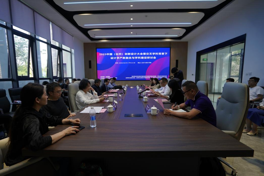 10月19日下午,艺术与设计学院举办2023中国(台州)创新设计大会暨交叉学科背景下设计学产教融合与学科建设研讨会。浙江大学孙守迁教授、苏州大学李超德教授、江南大学殷俊教授、苏州大学方敏教授、浙江理工大学吴群教授、浙江科技学院郑林欣教授、海上丝绸之路创新设计产业联盟秘书长赵建国教授、晖腾工业科技有限公司总经理陈敏应邀参加研讨,校党委委员、副校长赵小明出席会议。会议由院长柯胜海主持。学院班子成员、系主任、教师代表参加。