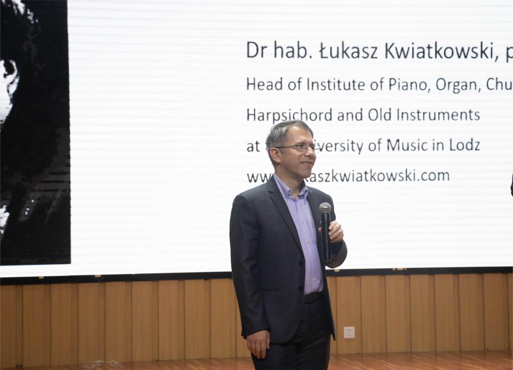 11月3日下午,波兰罗兹音乐学院克维亚特科夫斯基教授为艺术与设计学院师生做了题为《肖邦—戈多夫斯基、钢琴演奏的发展及其教学方法》的讲座。讲座由学院副院长叶高峰主持,音乐系的师生们参与了这次活动。