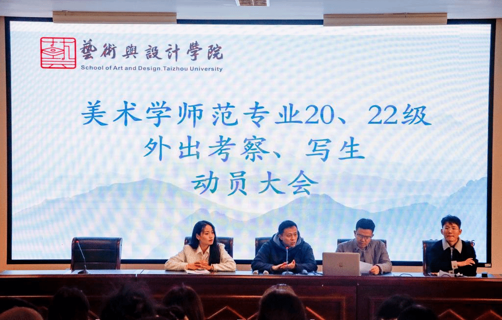 会上,徐海军强调了外出实践安全的重要性。刘洋、姚风、杨鑫俊分别就艺术考察、专业写生活动以及外出管理和纪律等做了具体部署。要求同学们认真创作、虚心学习,力争创造出好作品,努力提升专业水平和素养。